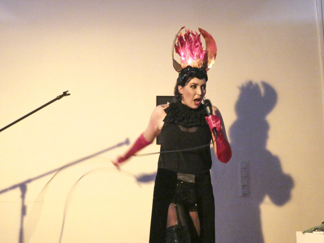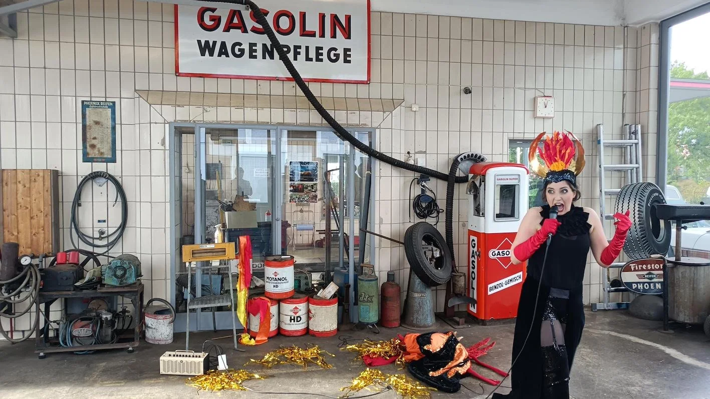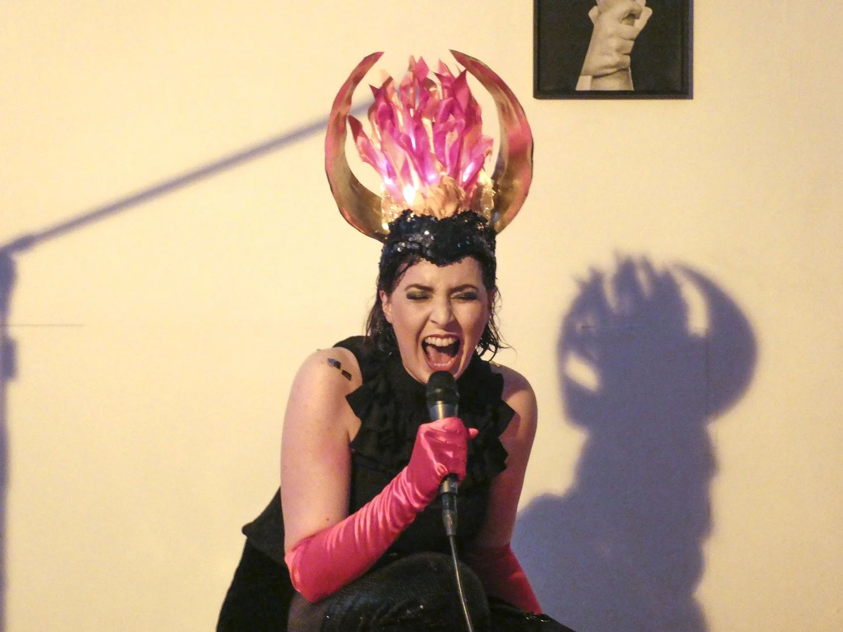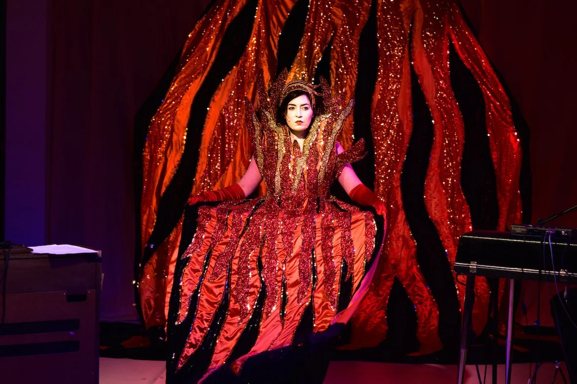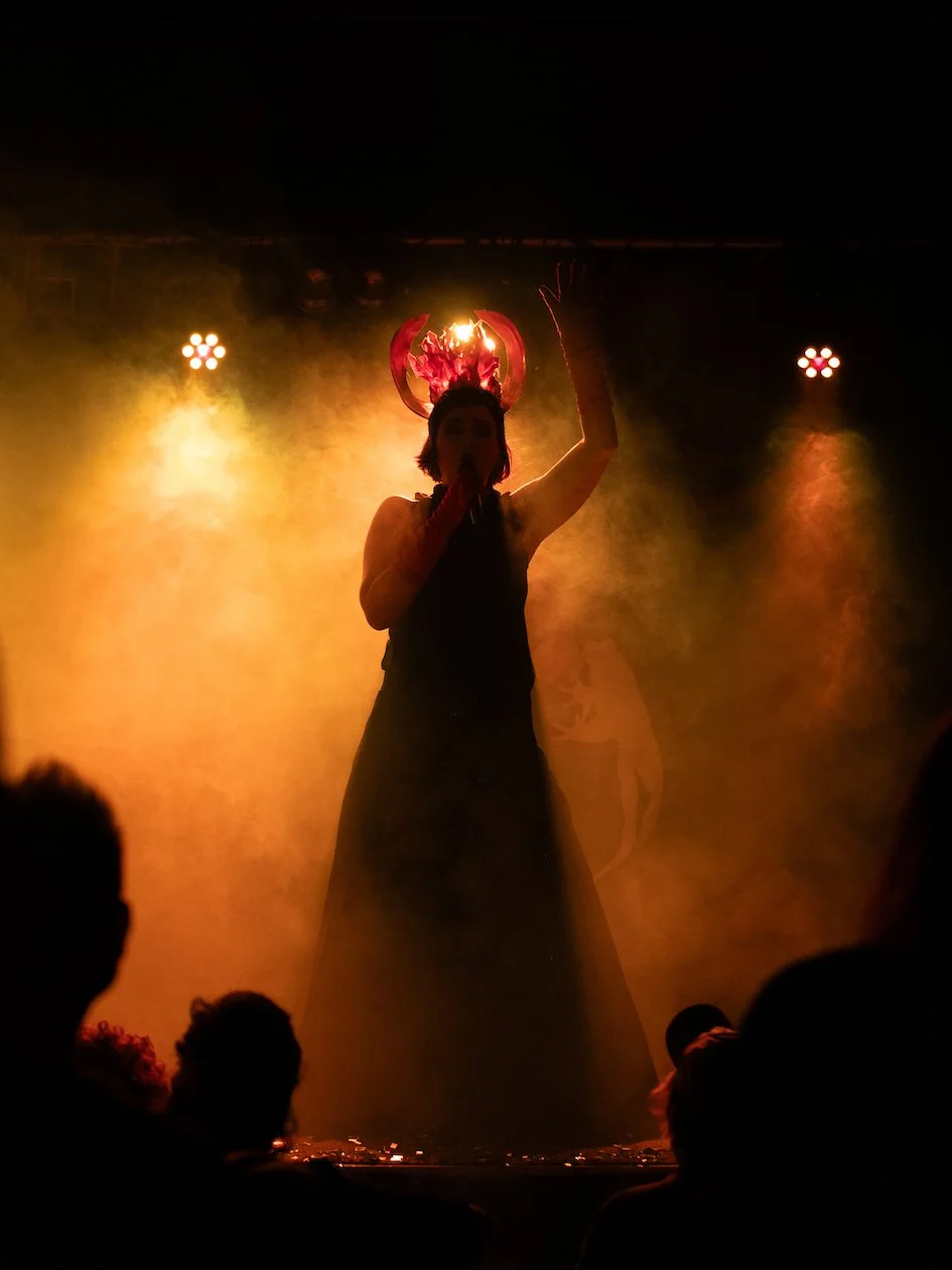 With the solo performance "ERUPTIVA EXTRAVAGANZA - A Volcanic Disruption", the performance artist Nolundi Tschudi impersonates the volcano as a drag-persona of the catastrophic. She dances on the edge of the abyss – dissecting the seductive power and bizarre poetry of the moment when everything threatens to vanish in destruction. In her lava glowing illuminations a neo-surrealistic scenario emerges, that dares to tread the fine line between vaudevillian lightness and performative, brute immediacy – unleashing an ectasy that underlies the Zeitgeist of the 1920s and today.